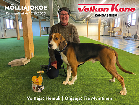 Mölliajokokeella haluttiin madaltaa kynnystä osallistua kokeisiin ja avata ajavilla koirilla harrastamista myös yleisölle. Iloisen fiiliksen kokeeseen osallistui tällä kertaa kahdeksan koiraa, joista voiton vei Tia Mynttisen suomenajokoira Hemuli.