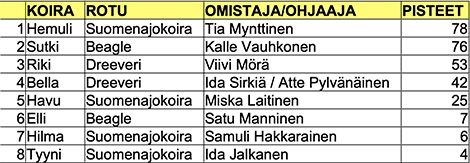5. Havu, suomenajokoira, Miska Laitinen, 4 pist.