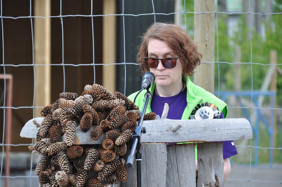 Kennelkerhon silloinen puheenjohtaja Merja Salomaa pitämässä puhetta kentän avajaisissa.