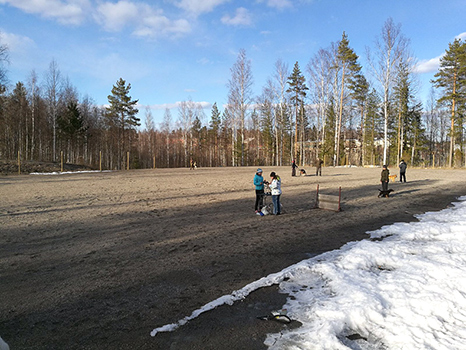Keväällä 2017 lumien sulettua kentälle päästiin jo treenaamaan koirien kanssa.