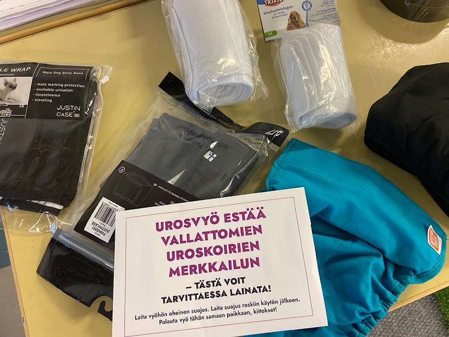 Ulkoiluta koirasi huolella ennen halliin tuloa. Mikäli olet epävarma koirasi sisäsiisteydestä, suosittelemme käyttämään housuja/urosvyötä.